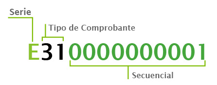 La letra B indica la serie, los próximos 2 dígitos especifican el tipo de comprobante y los últimos 8 dígitos corresponden a la secuencia, para un total de 11 caracteres.