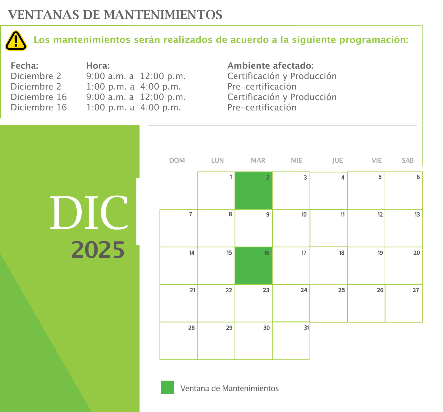 ​​​​​​​​La presente sección tiene por finalidad proporcionar a los contribuyentes información oportuna relacionada a la programación de mantenimientos realizados a los servicios de Impuestos Internos.​​